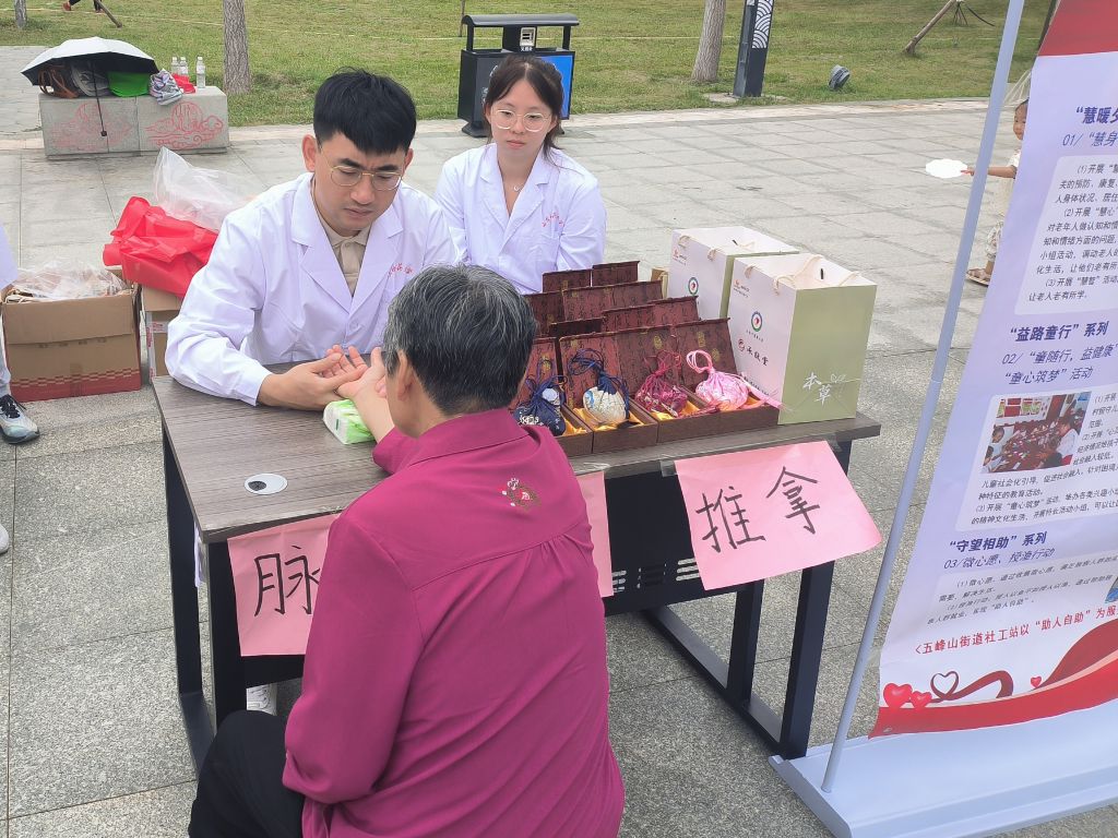 与善同行,让爱传递。正值我国第8个“中华慈善日”期间,为大力弘扬中华民族扶贫济困的传统美德,发扬慈善文化,提升社会公众的慈善意识,扩大慈善资源。五峰山街道社工站链接山东中医药大学志愿者,通过对社区居民的医疗咨询和诊断,提供专业的诊断的治疗建议的同时向社区居民宣传社会工作,宣扬助人自助的理念,让社区居民了解社工,真正的接受社会工作,在社区中形成一种浓厚的社会工作氛围。