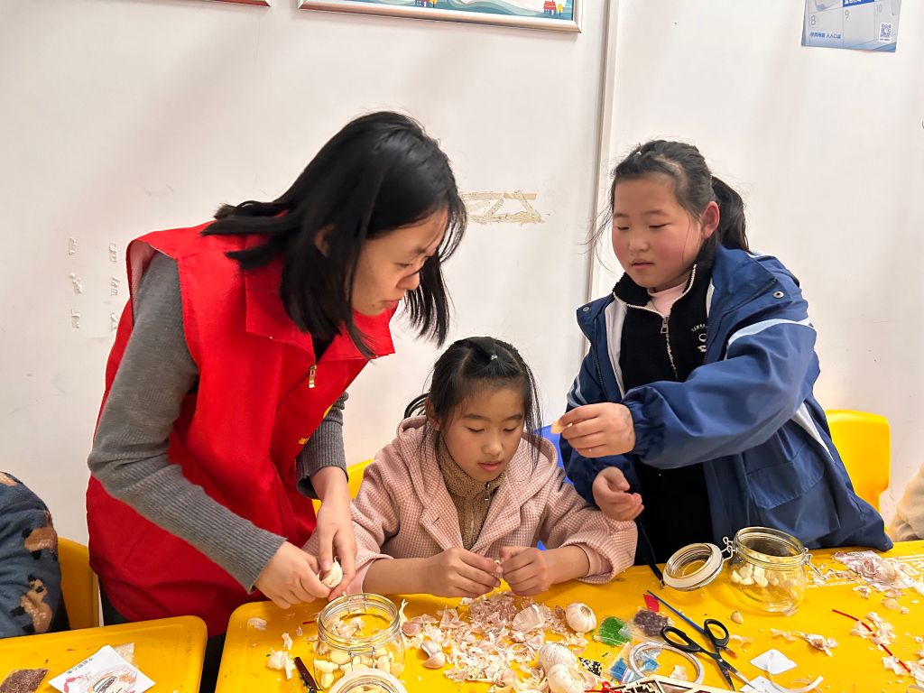 进入实践环节,制作腊八蒜时,孩子们摩拳擦掌、跃跃欲试。他们专注地拿起蒜瓣,小手灵活地忙碌起来。有的小朋友手法娴熟,蒜皮在其指尖迅速剥落,动作敏捷,很快就完成了任务,在众多孩子中脱颖而出、遥遥领先;有的孩子虽略显生疏,但也认真执着,在社工和小伙伴的鼓励帮助下逐渐熟练掌握技巧。看着一瓶瓶亲手制作的腊八蒜,孩子们眼中满是自豪与喜悦,成就感油然而生。