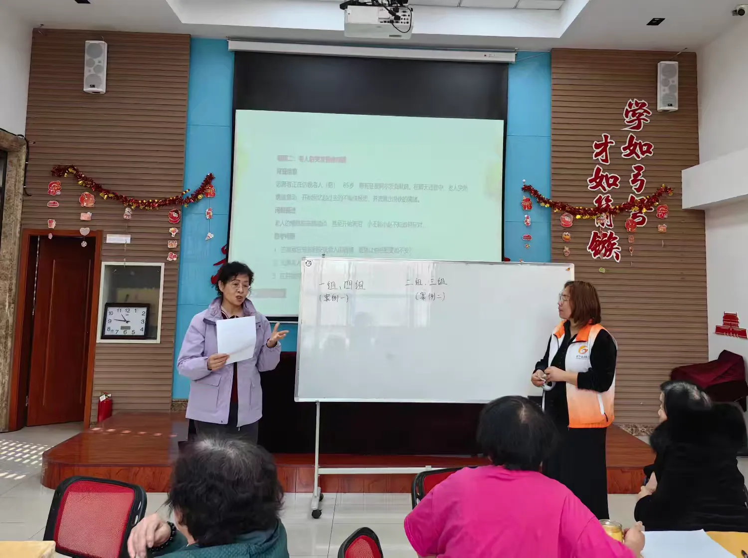 随后,培训正式开始。社工站的工作人员从访视工作前的准备工作讲起,详细阐述资料收集、访视计划制定等关键环节。接着,深入讲解了访视工作中的具体步骤和注意事项,包括如何与老人有效沟通、如何观察并记录老人的生活状况等。通过生动的案例分析和互动问答,志愿者们对访视服务的流程和要点有了更加清晰的认识。