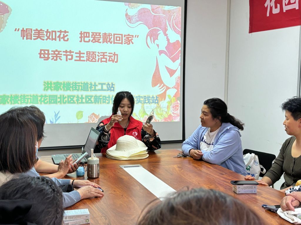 为进一步弘扬中华民族传统美德,传递孝道文化。5月10日,洪家楼街道社工站联合花园北区社区开展“‘帽’美如花 把爱‘戴’回家”感恩母亲节草帽DIY活动,社工和社区居民们欢聚一堂,共同庆祝母亲节。