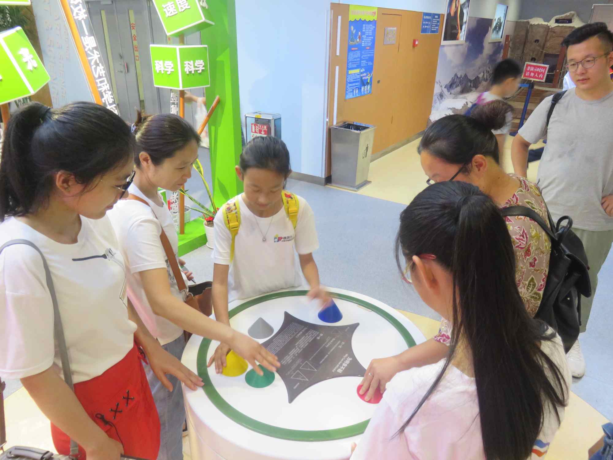 天公不作美,今日的天气虽不是烈日当头,但依旧闷热难耐,孩子们带着如炎炎夏日一般的热情开始了一上午的科幻旅程。孩子们对未知充满了好奇,在每一个科学仪器和展厅前都会驻足观望,好似定要破解未知之谜一般。有的孩子已然就是一个“小小科学家”的模样,向自己的小组成员讲解科学奥秘,在一阵阵融洽的小组讨论中点燃了每一位青少年对于科学的浓厚的兴趣和强烈的向往。
