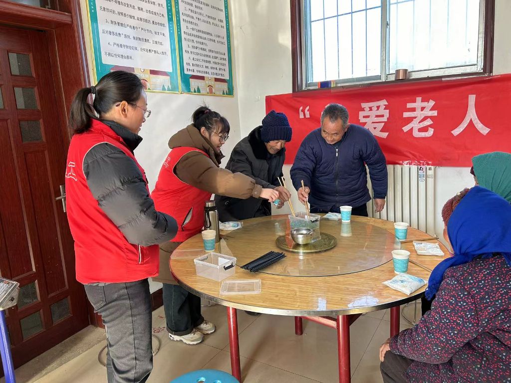 羊里街道社工站开展“银龄港湾”之“料峭春意寒,暖暖冬至情”冬至助老活动