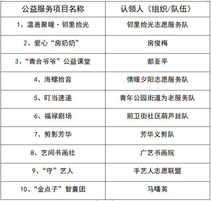(首批公益志愿服务项目认领清单)