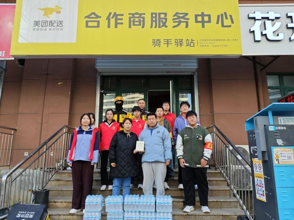 此外,大学生志愿者们还将关爱延伸到了辖区内的新就业群体。他们来到骑手驿站,为忙碌的外卖员们送上饮用水,并亲切地与他们交流。志愿者们真诚的笑容和贴心的问候,让外卖员们在紧张的工作间隙感受到了社区的关怀与温暖。