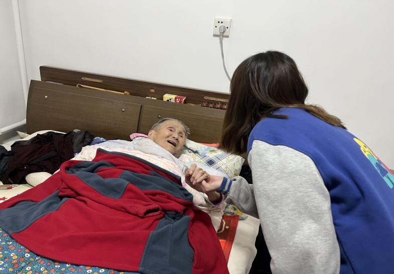(社工与90岁高龄老人聊天)