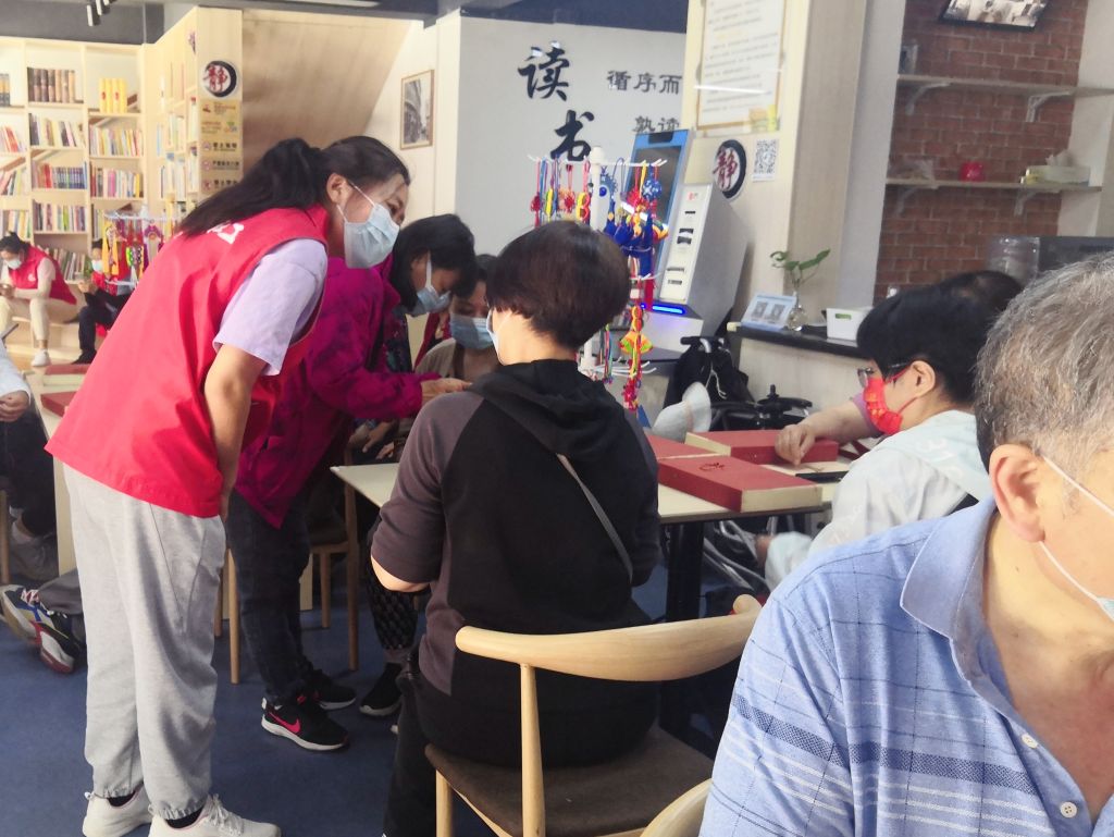 此次活动在泉城书房南村街道分馆举行,社工们考虑到参与本次活动的残疾人朋友的实际情况,选择在一楼布置出一个温馨舒适的空间,与此同时为了大家的安全社工积极做好防疫工作,帮助参与活动人员测温扫码,对没有智能机的残疾朋友,社工们通过微信代查功能,帮助其完成。