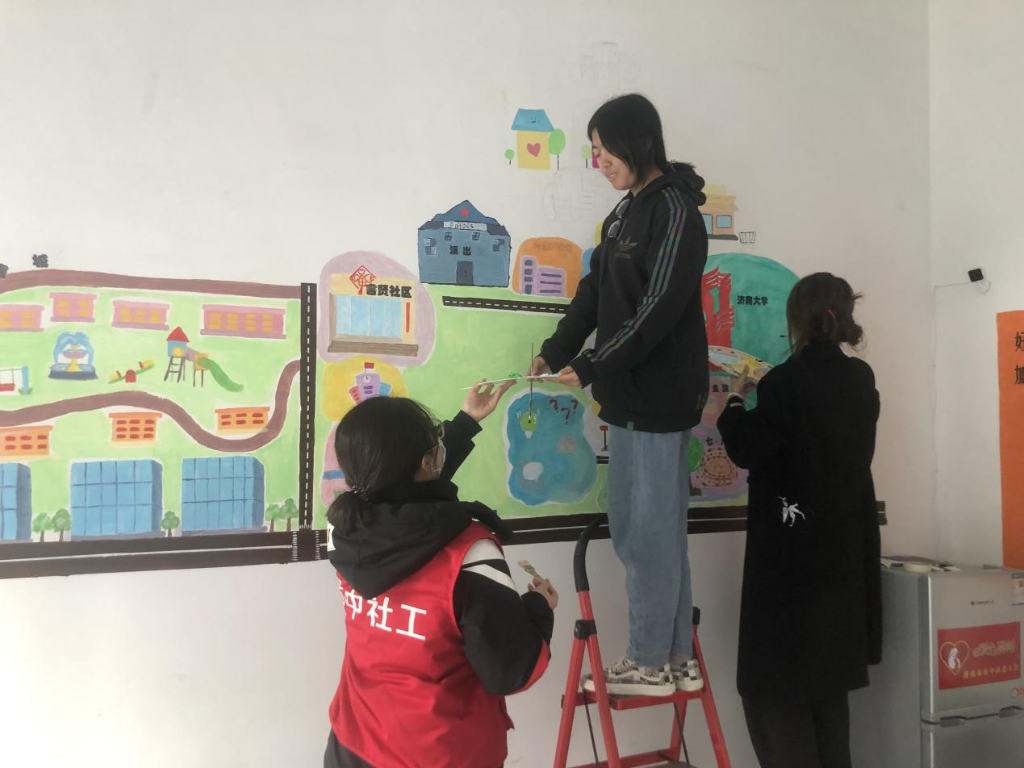 共绘党建文化,展现社区新貌——七贤街道社工站赋能志愿者开展党建品牌墙绘活动