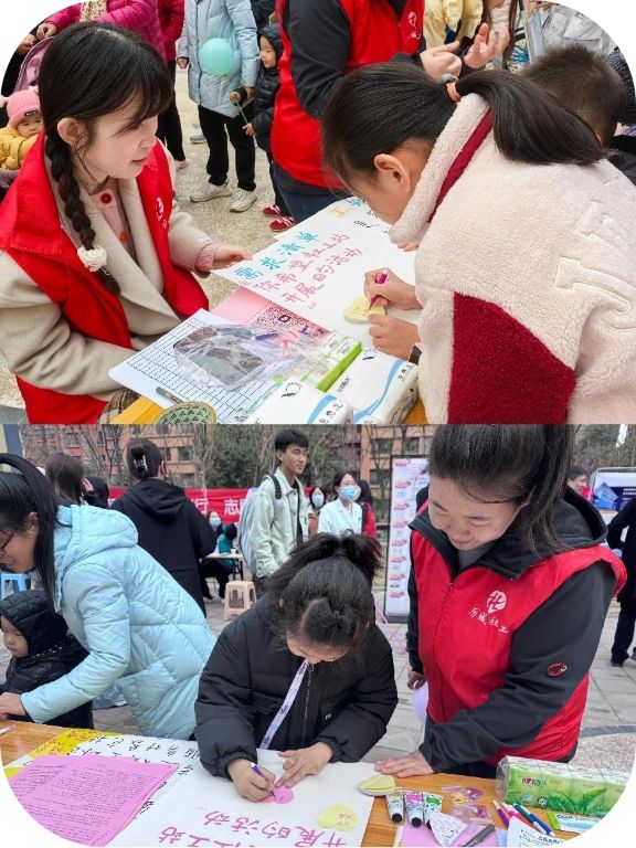 通过发布志愿服务项目,山东商业职业技术学院数字营销产业学院大学生志愿者积极响应,参与社工日宣传。活动现场引导儿童手工制作雷锋帽、填涂雷锋书签,宣讲雷锋月雷锋志愿服务精神。