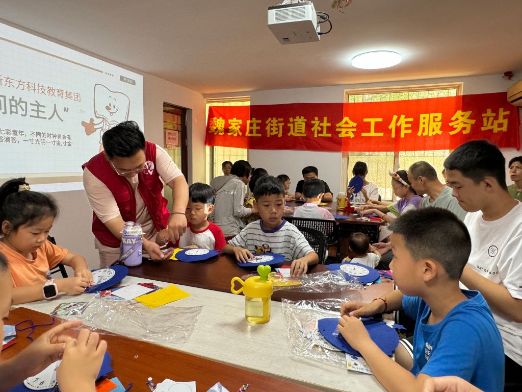 近日,魏家庄街道社工站联合永庆街社区开展“时光小匠”钟表DIY活动,为孩子们的假期生活增添了一抹亮丽的色彩。