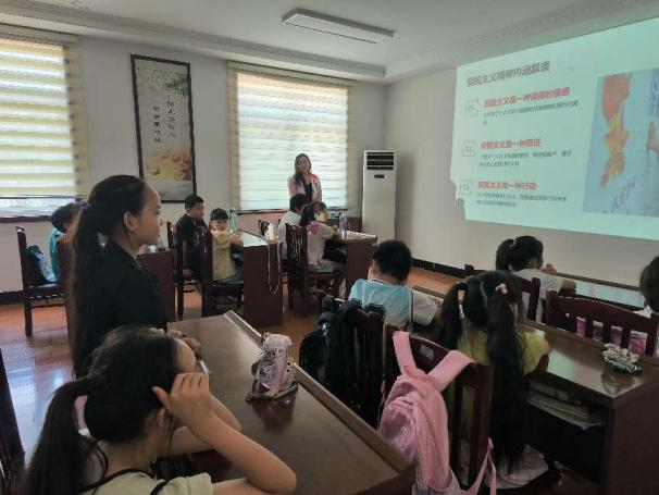 活动伊始,通过播放精心剪辑的红色主题短片,迅速吸引了孩子们的注意力,并以此为契机,由志愿者们通过提问互动的方式,自然引出活动主题。随后,志愿者们以济南市著名的济南战役为切入点,深入浅出地讲述了抗日战争、解放战争等历史时期的故事,引导孩子们重温革命历史,缅怀革命先烈,深刻理解爱国主义精神的内涵与价值。