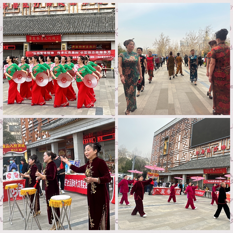 除志愿服务外,辖区的艺术、书画类社团也积极参加此次公益活动,其中:红星艺术团团员们绕着这次活动的主题,在主持人的带领下,在场的所有人员唱响《学习雷锋好榜样》,歌曲热情高昂的旋律点燃了此次活动的气氛,舞蹈表演、传统服饰旗袍展以及乐器、歌曲的演奏等吸引了大量居民观看;广友书画院还现场给居民赠送了以“学习雷锋”为主题的字画。整个演出以及志愿服务过程,让“奉献、友爱、互助”的志愿精神深入人心。