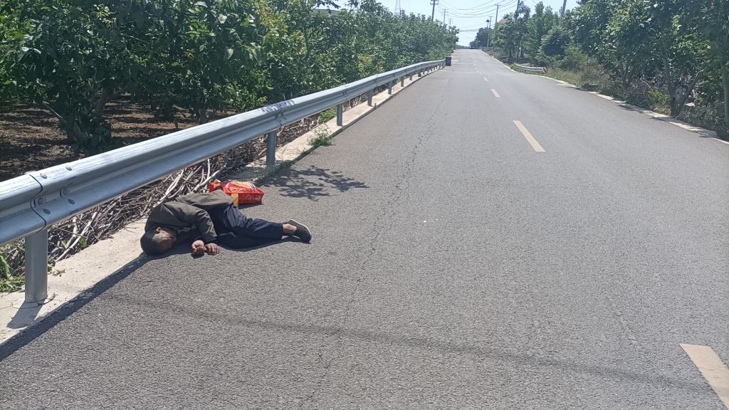 当日气温较高,社工到达目的地后发现老人躺在地上,神态恍惚,不是很清醒,对于主动上前帮助的志愿者和村民都拒之不理,社工先是稳定老人情绪,通过会谈沟通技巧引导老人放松精神,并在志愿者的配合下老人得以妥善安置。