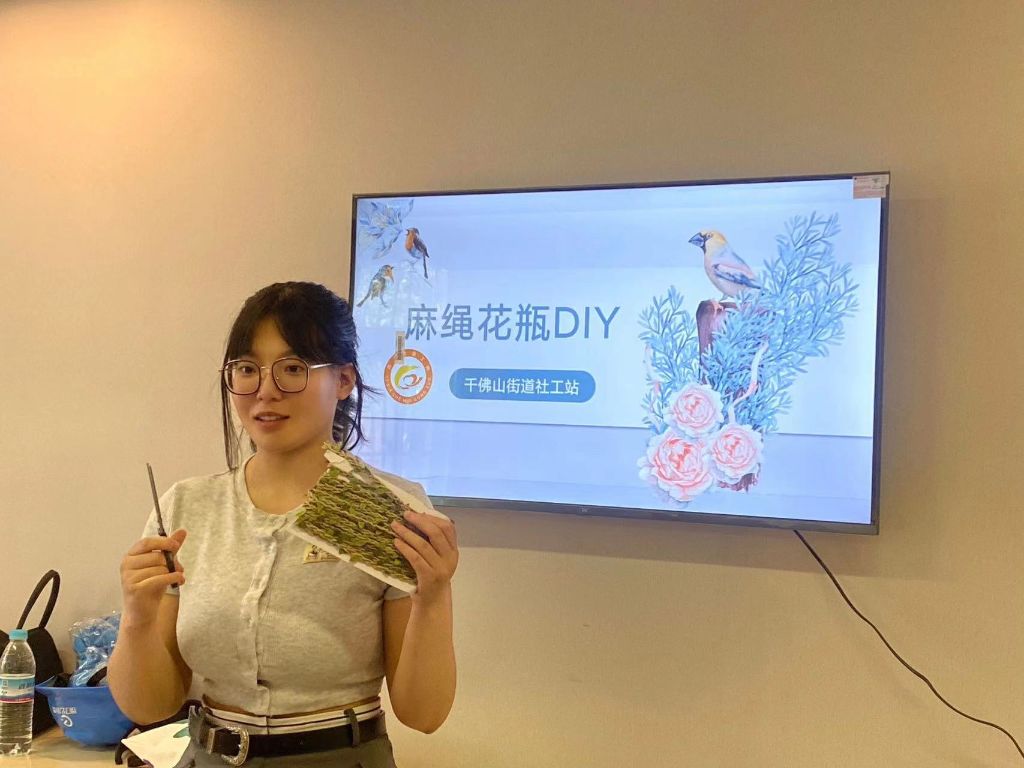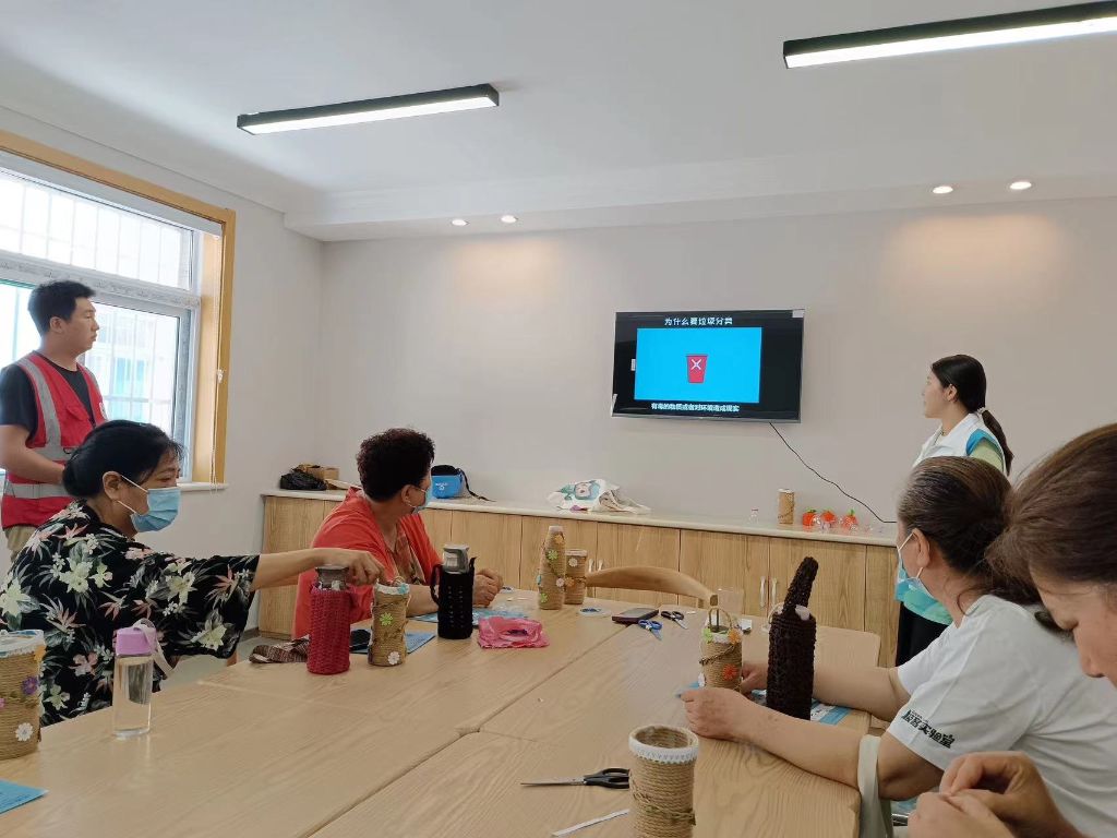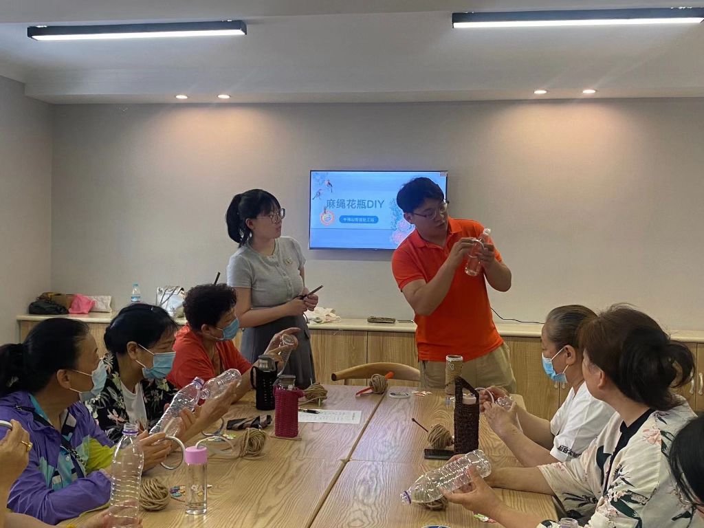 为提升社区居民的环保意识,培养老年人的兴趣爱好和动手能力,进一步丰富辖区精神文化生活。6月9日上午,千佛山街道社工站联合棋盘街社区日间照料中心、棋盘街社区新时代文明实践站开展了“变废为宝”——DIY麻绳花瓶环保活动。