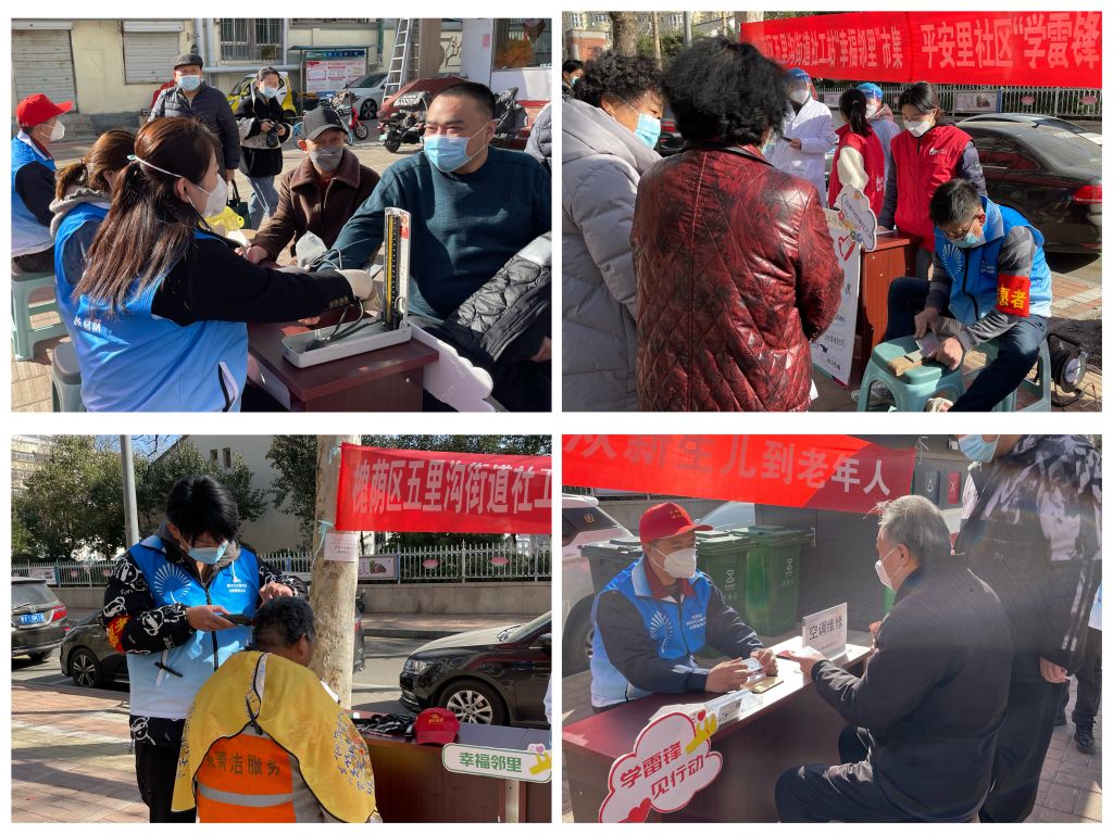 在“学雷锋”公益市集上,有来自社区义诊医疗服务队、社区生活修缮队、五色绳志愿服务队等各类社区社会组织,为社区居民开设公益查体摊位、政策咨询摊位、便民服务摊位、家电维修摊位和志愿服务队招募摊位等服务。社区居民在摊位上体验量血压、口腔检查、血糖检查、家庭维修咨询、磨剪子戗菜刀、爱心理发等服务,在浓浓的社区公益氛围里,不仅促进了邻里关系的融洽,也让社区居民感受到志愿服务在身边、雷锋精神在身边。