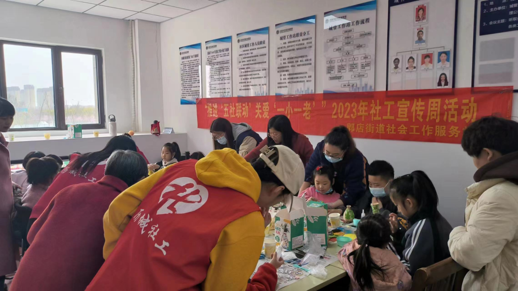 为进一步宣传社会工作专业作用,做好“五社联动”助力未成年人保护,推进“五社联动”关爱“一小一老”社工宣传周主题宣传,郭店街道社工站结合实际情况,联合东城名郡社区,于3月25日开展“瓶”添乐趣,七彩人生社工周宣传活动。