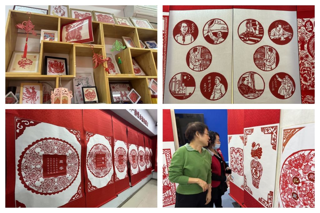 剪完之后,社工和志愿者架起了铁架子,和学员们把一些立体的剪纸悬挂上去,看着自己的作品被一一展出,大家脸上都洋溢着满足的微笑,在欢乐的气氛中布置完了场地。学员们热情的互相介绍自己的作品,相信大家在艺术的熏陶下,能够更好地传承发展与创新这门技艺,真正让非遗“活”起来。