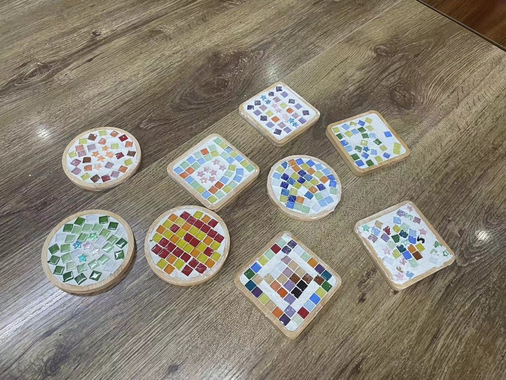 制作过程中,老人们展现了极高的热情和创造力。他们根据自己的喜好和想象力,挑选出各种颜色的马赛克石,精心设计出各式各样的图案。在拼接、固定、填缝等工序中,老人们互相帮助,互相学习,现场气氛温馨而和谐。