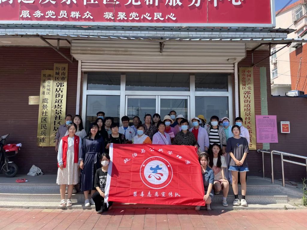 为进一步加强广大群众对毒品危害的认识,增强群众自我保护意识,做好关爱“一小一老”实践活动,发挥“五社联动”作用,携手共创无毒社区。2023年6月8日,郭店街道社工站、山东青年政治学院联合郭店街道虞景社区开展“珍爱生命,远离毒品”宣讲活动。