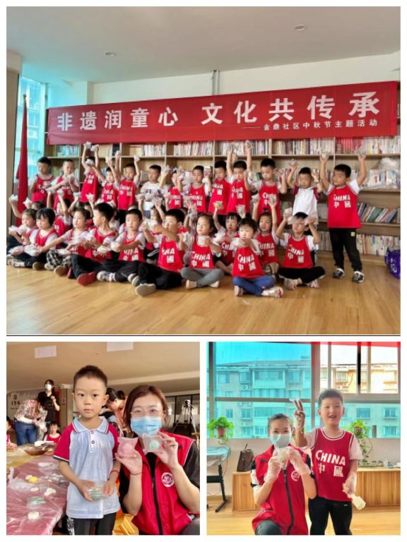 金鼎社区活动中,社区老党员为金鼎北区幼儿园的孩子们讲述了中秋节的来历及习俗,随后我站社工向金鼎北区幼儿园的小朋友们讲解了制作月饼的方法步骤,与孩子一起揉面、包馅、压模,看着自己亲手做的月饼,孩子们脸上都露出了灿烂的笑容,体会到了劳动和幸福的味道。
