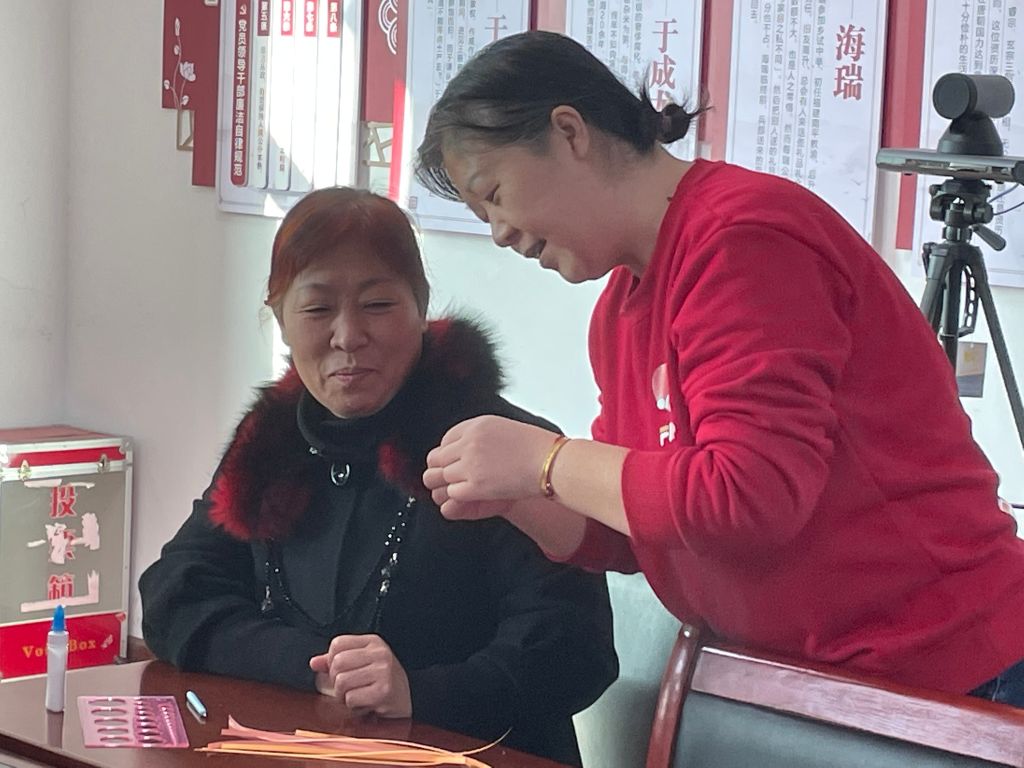 授课老师进行手工盘纸制作指导