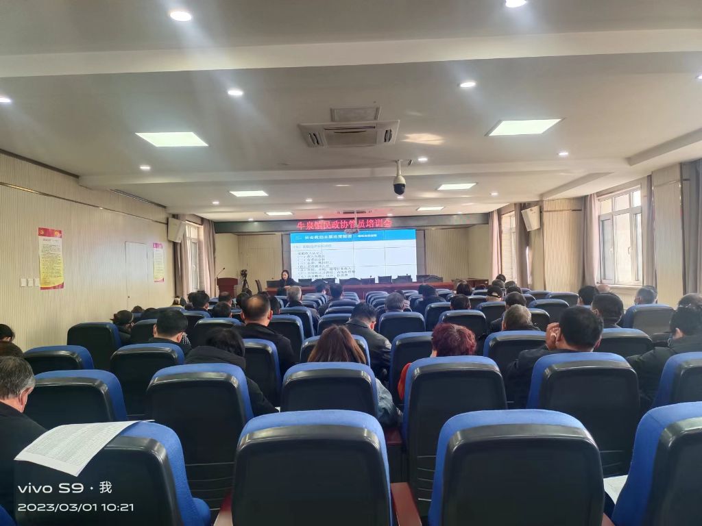 为进一步推动民政各项工作顺利开展,促进民政工作更加规范化、精准化,提高牛泉镇民政协管员业务水平,推进社工站建设运营和服务进度,3月1日,牛泉镇民政办及社工站开展民政救助政策和基本业务知识方面的业务培训会,全镇69个村村级民政协理员参加会议。
