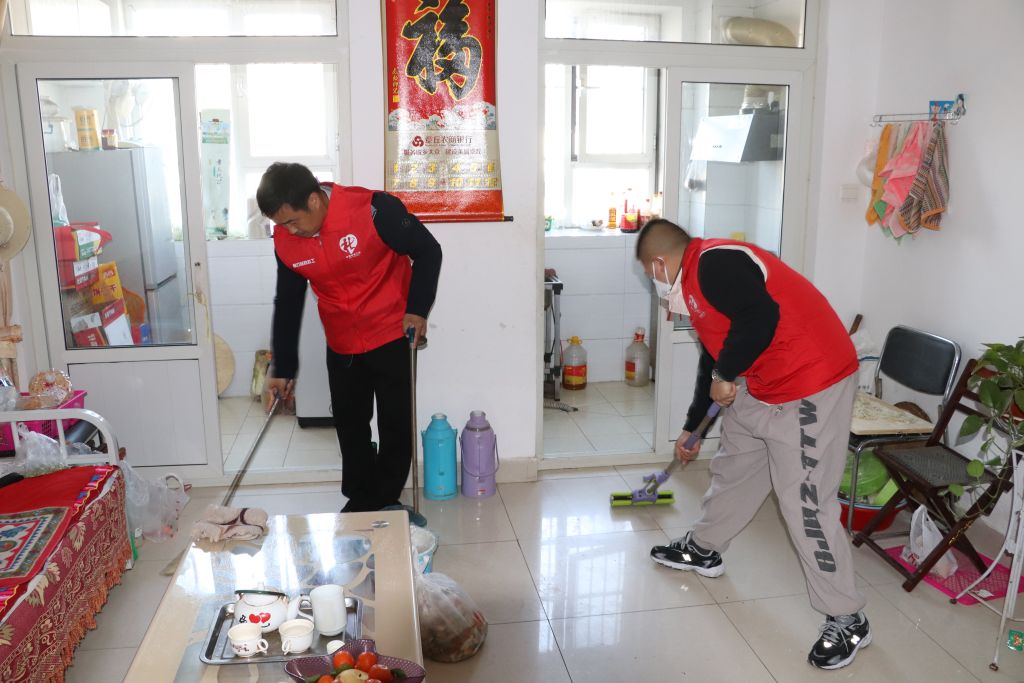社工与志愿者也不闲着,主动为老人们清洗头发、打扫卫生,与老人们聊天、讲故缓解内心的孤独寂寞,把爱付诸于实际行动,表达了对老人们的关怀。