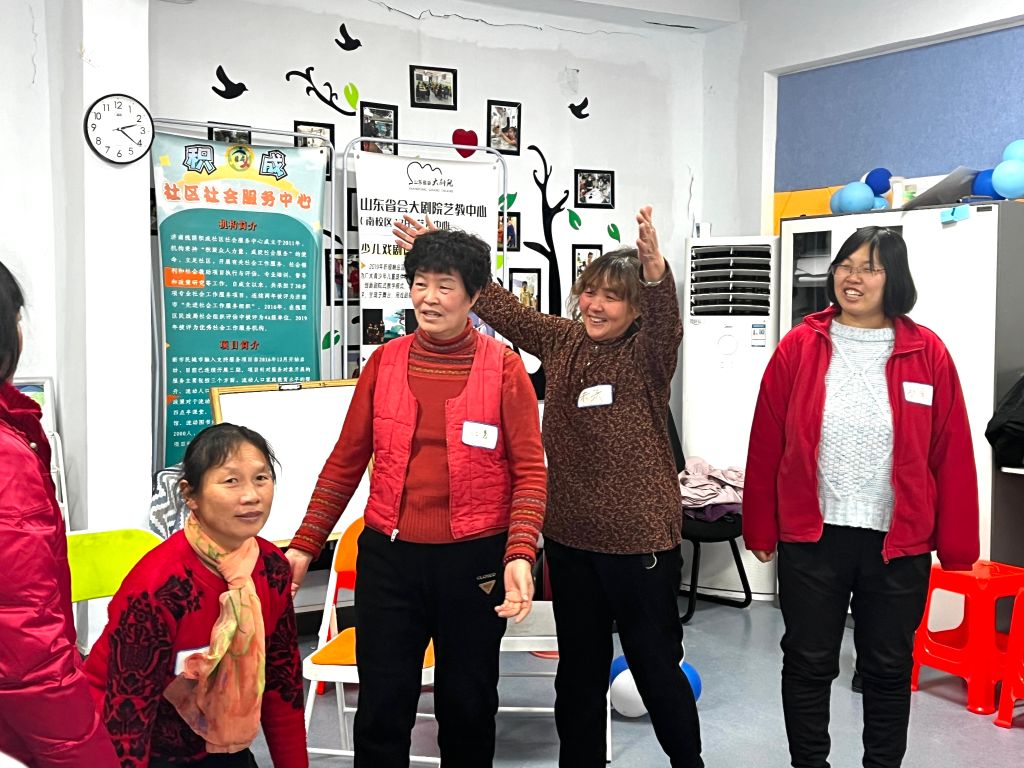 雪后重相聚,冬日暖洋洋。上周的暴雪天气使得原计划上周末开展的戏剧小组推迟一周,天气回暖,积成社活动中心又一次聚满了人气,充斥着欢笑。这是家政女工戏剧小组活动的最后一节,大家依旧热情饱满,情绪高昂。在戏剧小组进入尾声之际,对服务对象的这一阶段赋能成效也逐渐凸显,历经三次戏剧小组活动,社工感受到了服务对象自身能力的提升,同时,也能切实观察到家政女工群体自组织发展的潜力。