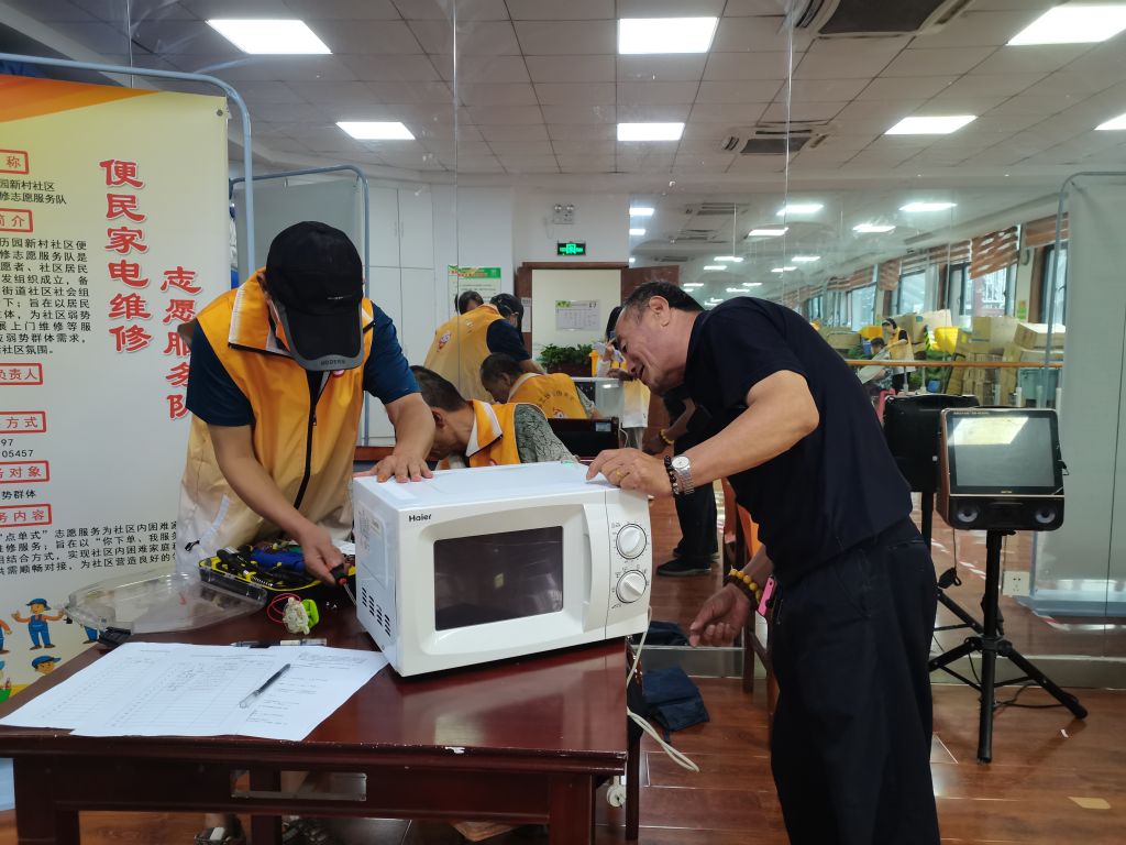 7月12日,爱心义剪、便民维修活动正式开启。活动由两名组织负责人自主策划,以为社区老年人免费理发,排查家用小电器故障点为主要服务内容,接地气的服务主题和便捷的服务方式吸引了众多老年人前来参加。组织成员一边细致地修剪发型、维修电器,一边与服务对象交流健康养生、照看孙辈、时事热点等话题,增进与服务对象的情感联结;此次没有亲自担任“理发师”或“修理员”的组织成员向等待中的服务对象热情地介绍组织的服务内容,引导服务对象将服务推广给身边的家人和朋友,助力更多社区老年人享受到便民服务带来的美好生活体验;社工在活动现场向来往居民发放《2023年社区老年人需求调研问卷》,深入挖掘服务需求、收集服务反馈,为完善老年社会工作服务方案提供依据。“这些志愿者们不光给我们理发、修东西,还跟我们拉家常,就和自己的朋友一样,让我感到很轻松!”刚刚剪完头发的田阿姨整理着衣襟说道。社区社会组织成员们也表示获得了满满的自信心和成就感,在今后要更好地承担为民服务的使命。