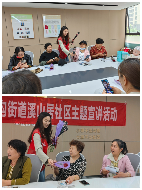 活动开展前期,社工站链接禧玥管家家政服务中心的专家郭老师,针对居民的需求,从全新的角度为居民带来一场别样的护理盛宴。过程中,郭老师针对居民比较关心的婴幼儿的日常护理技巧、辅食添加、如何为婴幼儿提供良好的生活环境以及婴幼儿常见疾病的预防与处理这些问题进行详细的讲解,并采用理论与实操相结合的方式,边讲解、边演示,使得知识更加通俗易懂。现场学习氛围高涨,大家边看、边学、边记,遇到不理解的地方居民们积极发言,郭老师都用通俗易懂的语言解答了居民疑问。随后,郭老师又向大家教授了亲子互动与教育方法,帮助大家摒弃错误观念,科学育儿。讲座结束后,驻站社工及志愿者向在场的母亲都献上一支康乃馨,以表达对她们节日的祝福。