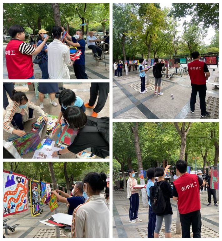 8月27日上午,四里村街道社工站社工和亲子义工群志愿者早早来到四里村街道英雄山北广场,一起为困境儿童语语(化名)布置画展。儿童是民族的未来,祖国的希望,需要被社会关爱,困境儿童更是如此。根据马斯洛需求层次理论,人不仅有一般的生理需求和安全需求,还有社交需求,尊重需求和自我实现的需求,儿童正处于身心发展的关键时期,我们对他们的身心发展要投入更多的精力,困境儿童一般很难满足社交需求和自我实现需求,四里村街道社工站利用本次画展点亮困境儿童语语的微心愿,助其圆梦,从而实现困境儿童的自我价值,满足其自我实现的需求。