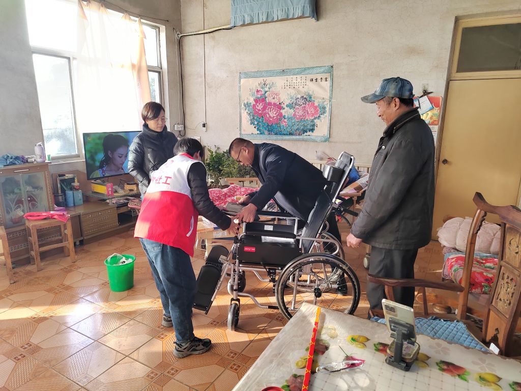根据前期筛查和评估的结果,社工以及残联工作人员入户到残疾人家中,社工们耐心地与每一位残疾人交流,仔细核对他们的身份信息和辅具需求,为残疾人及其家属详细解读了辅助器具使用说明书,耐心告知使用方法和注意事项,鼓励他们加强锻炼,积极走出家门,更好地融入社会。