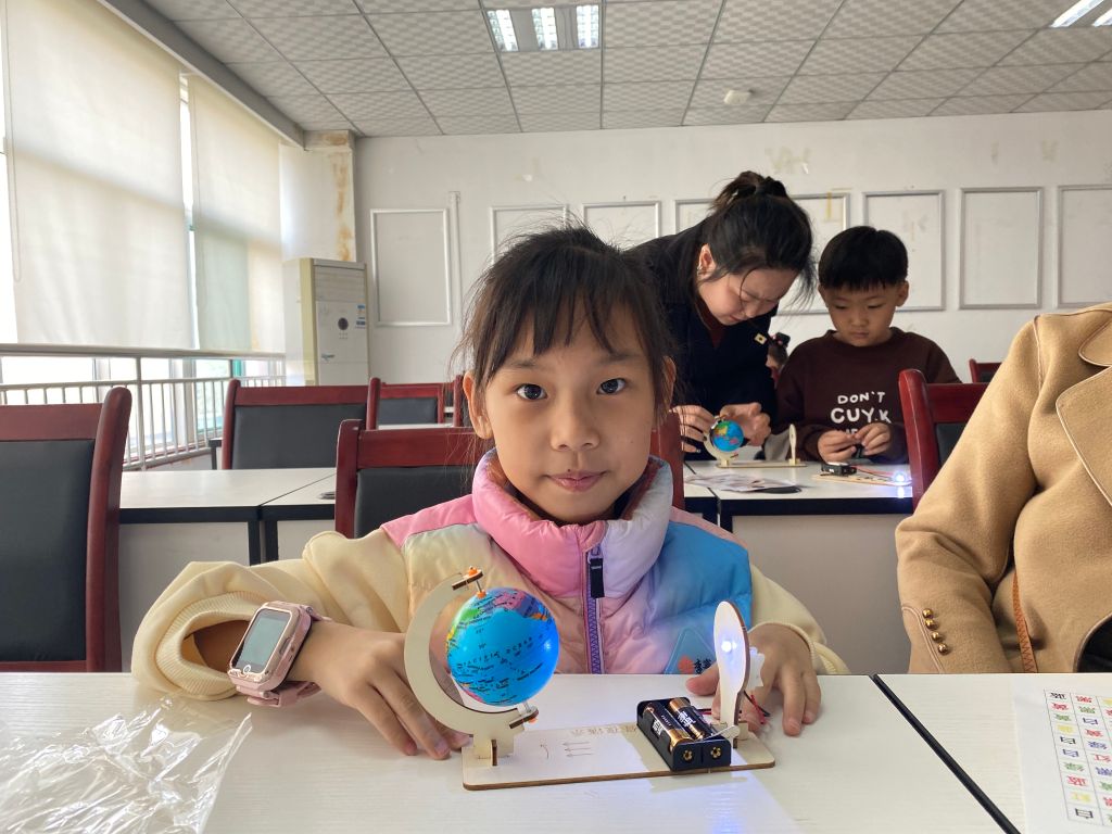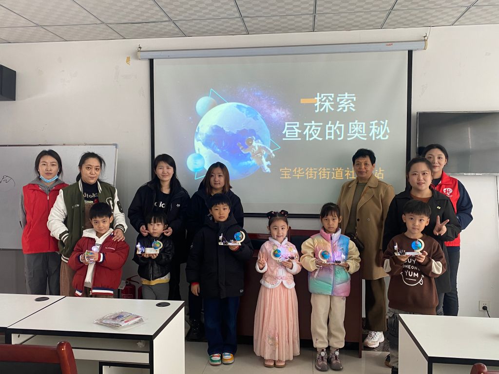 在活动现场,孩子们热情高涨,积极投入到昼夜仪的制作中。他们在社工们的指导下,利用简单的材料,木板、灯泡、电池等,制作出了一个个精美的昼夜仪。通过制作过程,孩子们了解了昼夜交替的原理,也对地球自转有了更直观的认识。