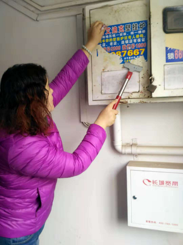 本次活动主要针对辖区的单元门、楼栋墙体、楼道、电梯内以及公共设施等乱张贴小广告进行清理。小广告不仅影响社区美观,其中包含的一系列虚假信息还会导致一些居民上当受骗,铲除小广告势在必行。在清理现场,社区工作人员不怕脏不怕累,拿着广告铲、水桶等工具,对电梯内、楼道内的墙体小广告进行了彻底清理,还有些粘贴牢固不易清理的小广告,将用手一点一点将其撕离墙体。