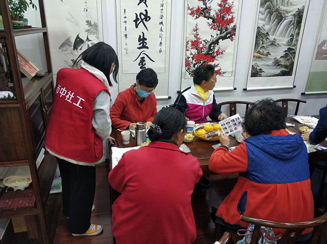 经过前期对接,中国银行工作人员充分发挥其志愿者的带头作用,为本次活动提供场地及资金支持。活动中,中国银行志愿者先通过讲解制作流程,介绍了组成杯垫的木块品种,讲解完后老人们动手实践,一个杯垫经过拼接、粘贴、吹干、打磨、擦蜡就完成了。在志愿者协助老人、老人之间互相交流帮助的过程中,阿姨们自己动手设计的独一无二作品就完成了。