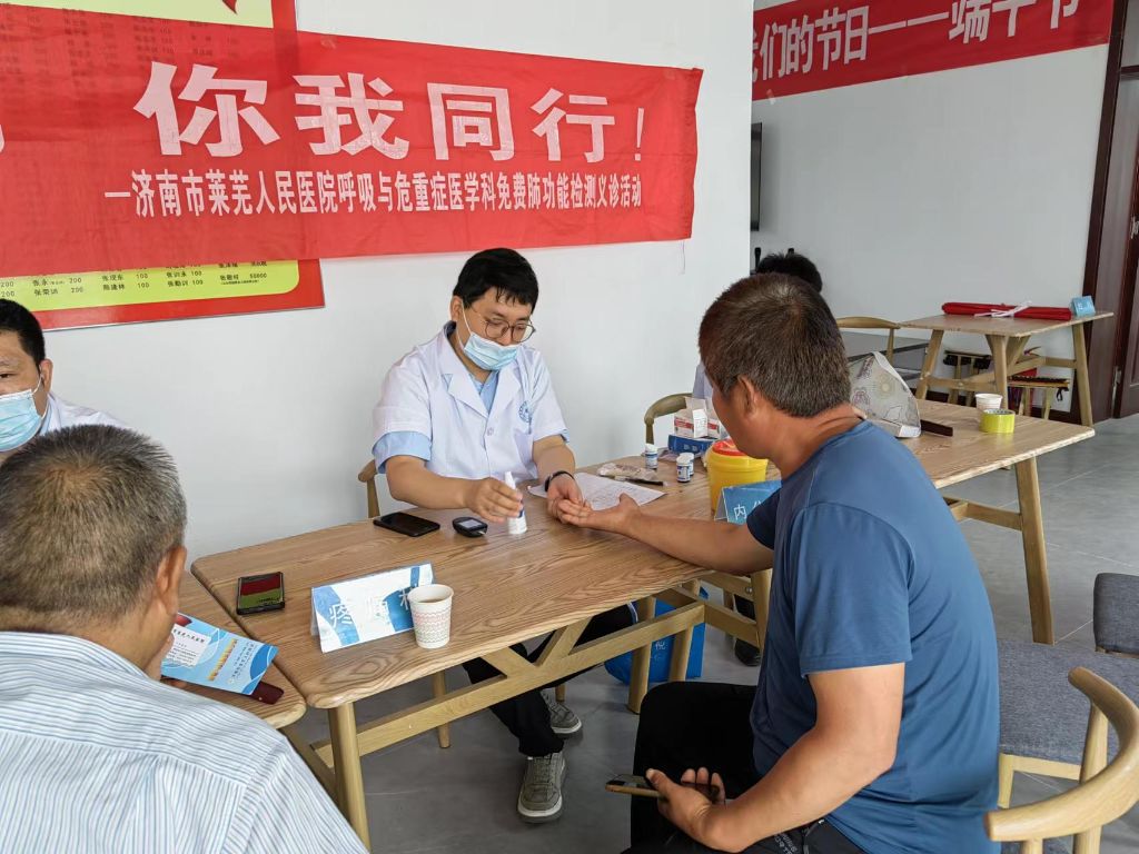 义诊现场,济南市莱芜人民医院的呼吸科、疼痛科、眼科、妇科、内分泌科、消化内科等8名专家组成义诊专家团,结合居民的健康需求,为老年人量血压、测血糖等一系列检查,向居民普及健康知识,各个科室专家耐心解答居民的问题。社工引导居民参加各项检查,协助医生维持现场纪律,做好人员登记,使居民们井然有序的进行义诊活动。老人张大爷说:“医生的上门义诊,免去了我去医院排队等候的烦恼,通过检查让我对自身健康情况有了更深的了解,知道了日常生活中的注意事项。