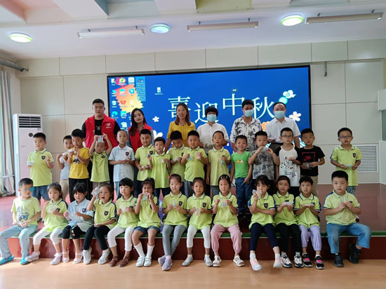 活动开始前,社工们提前来到幼儿园内调试电子设备、布置场地,为小朋友们学习制作月饼做好准备。社会爱心组织的老师通过跳舞、提问的方式与小朋友互动,积极调动了现场的氛围,孩子们全都踊跃的配合,对接下来的月饼制作充满了好奇与期待。