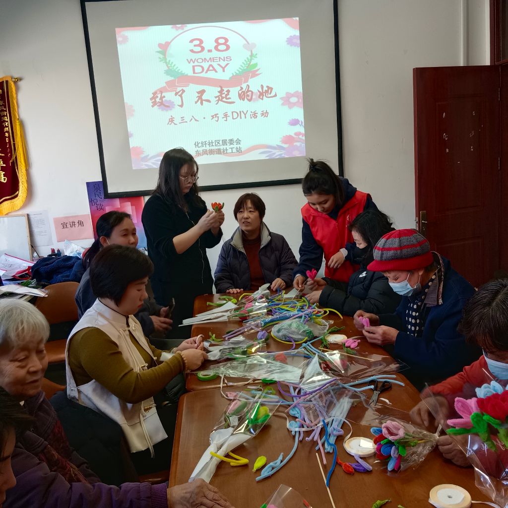 为庆祝三八妇女节,营造浓厚的女性节日氛围,提高辖区女性幸福感和节日仪式感。3月8日,东风街道社工站联合化纤社区开展“春光如许,永不凋零”扭扭棒diy花束活动。