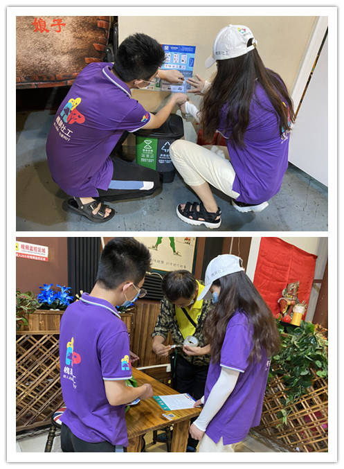 商户企业作为垃圾分类工作开展过程中的重要一环,担任着服务居民、发展城市的角色。前期,在营市街街道的引导下,社区居委会为辖区的各个餐饮商户发放了垃圾桶,减少垃圾混装的现象。7月30日,项目组进入辖区商户进行了走访活动,查看垃圾桶的使用情况,对分类工作做的不好的商户进行了宣传引导,细心讲解垃圾分类的意义以及如何更好的做好垃圾分类,耐心解答了商户对垃圾分类工作存在的疑问。项目组还对餐饮店的后厨进行了检查,保证商户的厨余垃圾单独打包分类,不与其他垃圾统一混装。