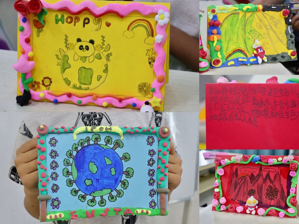 活动最后,社工带领孩子们一起拿起手中的工具,开启创意之旅,制作自己心中保护地球的宣传画框,孩子们积极参与其中,不一会一幅幅别致有趣的作品充分展示了小朋友们的创造能力和精神风貌。