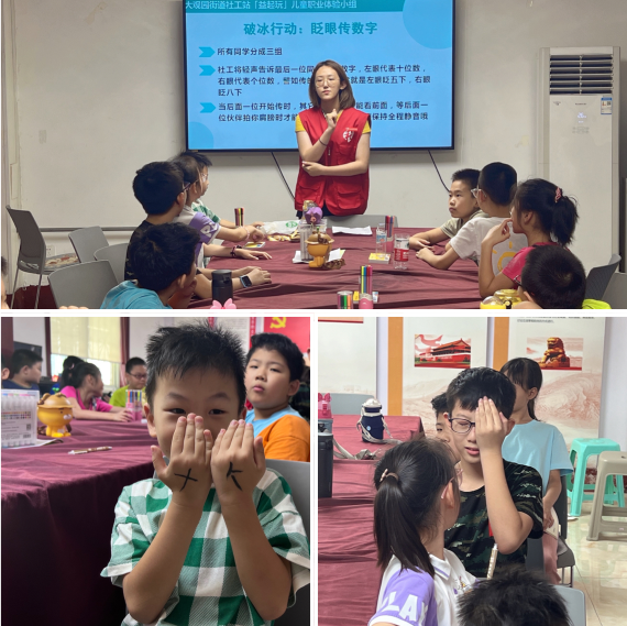 为帮助儿童认知和体验不同职业,开拓视野,感受不同职业带来的乐趣,在社会体验中多维度成长,培养职业理想,构建和谐的社交支持网络,实现自助互助,并在此期间激发小组成员的想象力和创造力,提升自我价值。2023年8月3日下午,大观园街道社工站联合大观园街道纬一路社区开展“益起玩”儿童职业体验小组活动第一节。