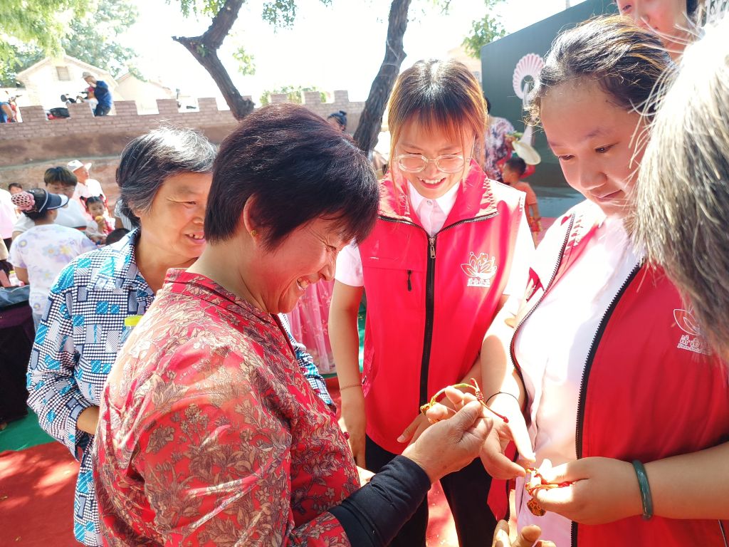 活动最后,社工为爷爷奶奶和小朋友们准备了祈福纳吉的五彩绳,向他们表达节日的祝福,感受来自社工的关心和牵挂。
