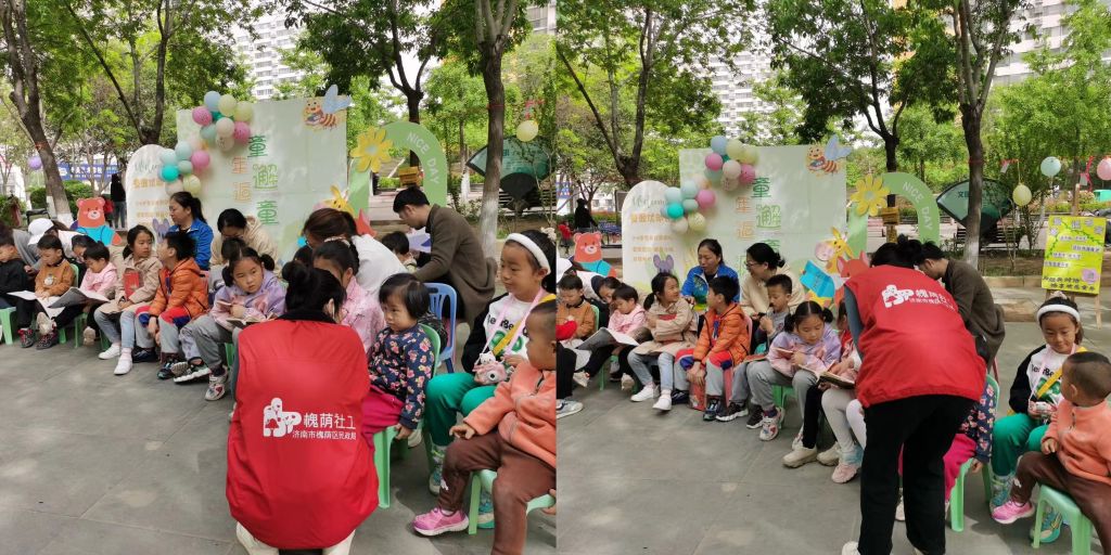 “4月23日”,世界读书日来临之际,振兴街街道社工站联合辖区托管机构童源幼儿园,于4月15日在阳光新城F区小广场,开展第二次户外亲子阅读及乐乐箱游戏主题活动。