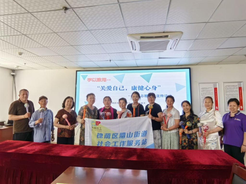 为促进社区骨干运用志愿服务培训知识践行社区志愿服务行动,5月22日下午,腊山街道社工站举办社区骨干志愿服务第四单元小组培训,联合国际花都第一社区、第二社区带领社区骨干开展了以“关爱自己,康健心身”为主题的社区志愿服务活动,向社区居民传递珍视生命、乐观生活的人生理念。