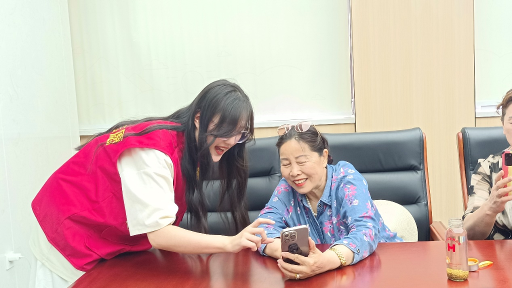 活动现场,老人们热情高涨,他们认真聆听讲解,不时互相讨论,还不忘用笔和本子仔细记录关键步骤。56岁的王阿姨兴奋地说:“以前总觉得自己年纪大了学不会,但这次的学习小组让我发现,原来拍摄视频这么有趣,而且并没有想象中那么难!”