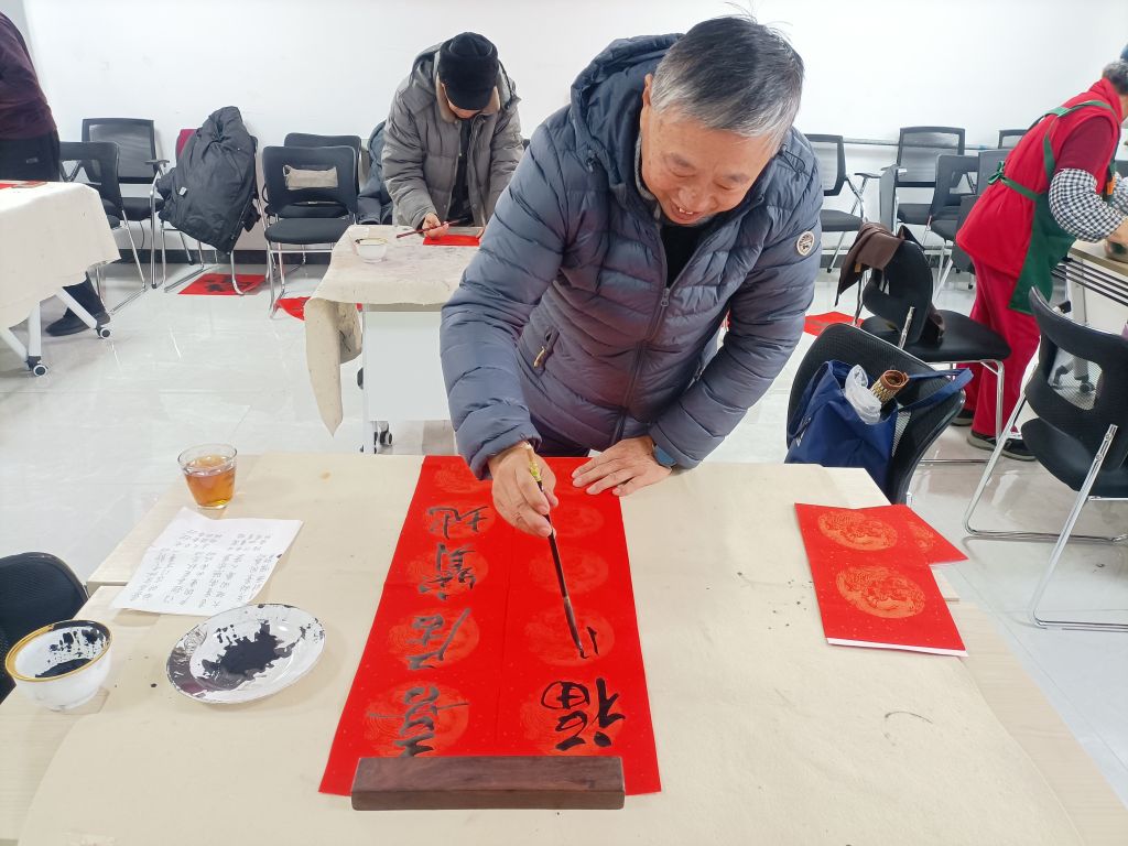 活动伊始,广友书画苑的志愿者挥毫泼墨,专注于笔尖。一幅幅火红的对联和“福”字充分展现中国传统文化的魅力的同时,也寄托着对困难群众满满的新年祝福。同时,社区志愿者分工明确、热情饱满、手法娴熟地包水饺。“希望吃到这个水饺的老年人能够身体健康,天天开心!”“吃到水饺的老年人心暖,我们志愿者的心更暖!”志愿者们开心地说道。现场活动氛围热烈,为困难群众服务热情充满整个活动会场。