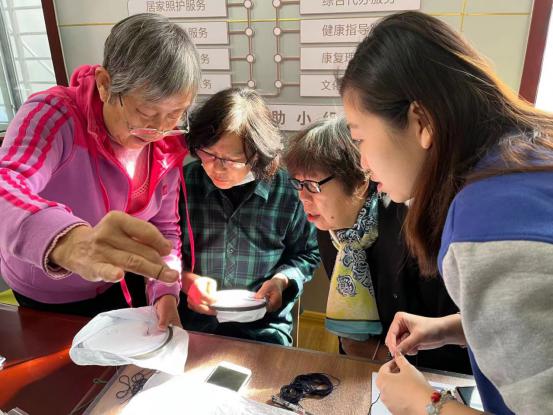 活动现场,社工对本次活动进行简要介绍后,向大家展示了刺绣手帕的成品效果。负责此次刺绣教学的是一位曾在服装厂工作多年的志愿者房俊梅,有丰富的手工刺绣经验。志愿者耐心地向大家讲解手帕图案需要用到的几种针法及具体操作步骤,大家聚精会神地听着,专心致志地穿针引线。娴熟的针法,一针一线勾勒出一幅幅优美的画卷,细密的针脚里隐藏着大家对老年人的感恩尊敬之情。重阳节到来之际,青合·和合志愿服务队的成员们将进行专项走访,把这些绣好的手帕赠送给辖区的高龄老年人群体,表示对他们身体健康、万事顺意的美好祝愿。