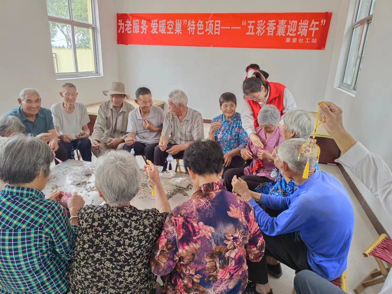 “五彩香囊迎端午”——寨里镇社工站开展空巢老年人社区活动