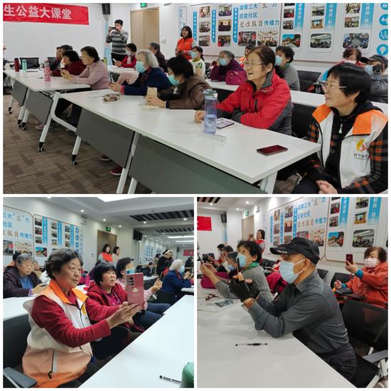 萧萧梧叶送寒声,江上秋风动客情。立冬已过,长者智能互助团的手机教学课堂陪伴我们从深秋到初冬,已经进行到最后一位讲师的课程。随着手机课堂的持续进行,成员们不仅学习了手机功能的灵活使用还结识了新朋友、新伙伴,长者智能互助团也能自主掌控课堂,完成授课。11月9日,傅砚修老师作为长者智能互助团的新讲师,在解放桥社区二楼活动室为社区居民们讲授了手机摄影入门课的第一讲。