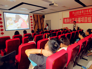 “暑期嘉年华·乐融你我他”暑期夏令营是“开心向日葵”青少年成长关怀服务项目的版块之一,项目组在前期社区走访、需求评估的基础上,策划了丰富多彩的小组活动,主要分为“玩转作业”课业辅导小组、“传国学经典·颂道德文明”国学道德学习小组、“阅读一小时”阅读小组、“冒险岛大作战之安全修炼手册”安全教育小组4个部分。