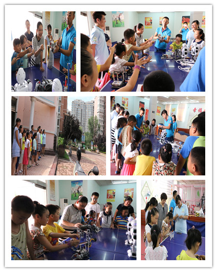 活动过程中,科普志愿者们向小营员们一一展示了各种不同类型的机器人、机器蛇、机械狗、升降电梯、电子遥控飞机的操作,引发了小营员们浓厚的学习兴趣。尤其是机器人舞蹈表演,展台前被围的水泄不通,在播放音乐小苹果和江南Style时,机器人整齐划一的动作和精湛的演技赢得现场观众的阵阵喝彩,最前排的小朋友忍不住趴到机器人的跟前,想要看明白这么多机器人是怎么做到这些高难度的动作。